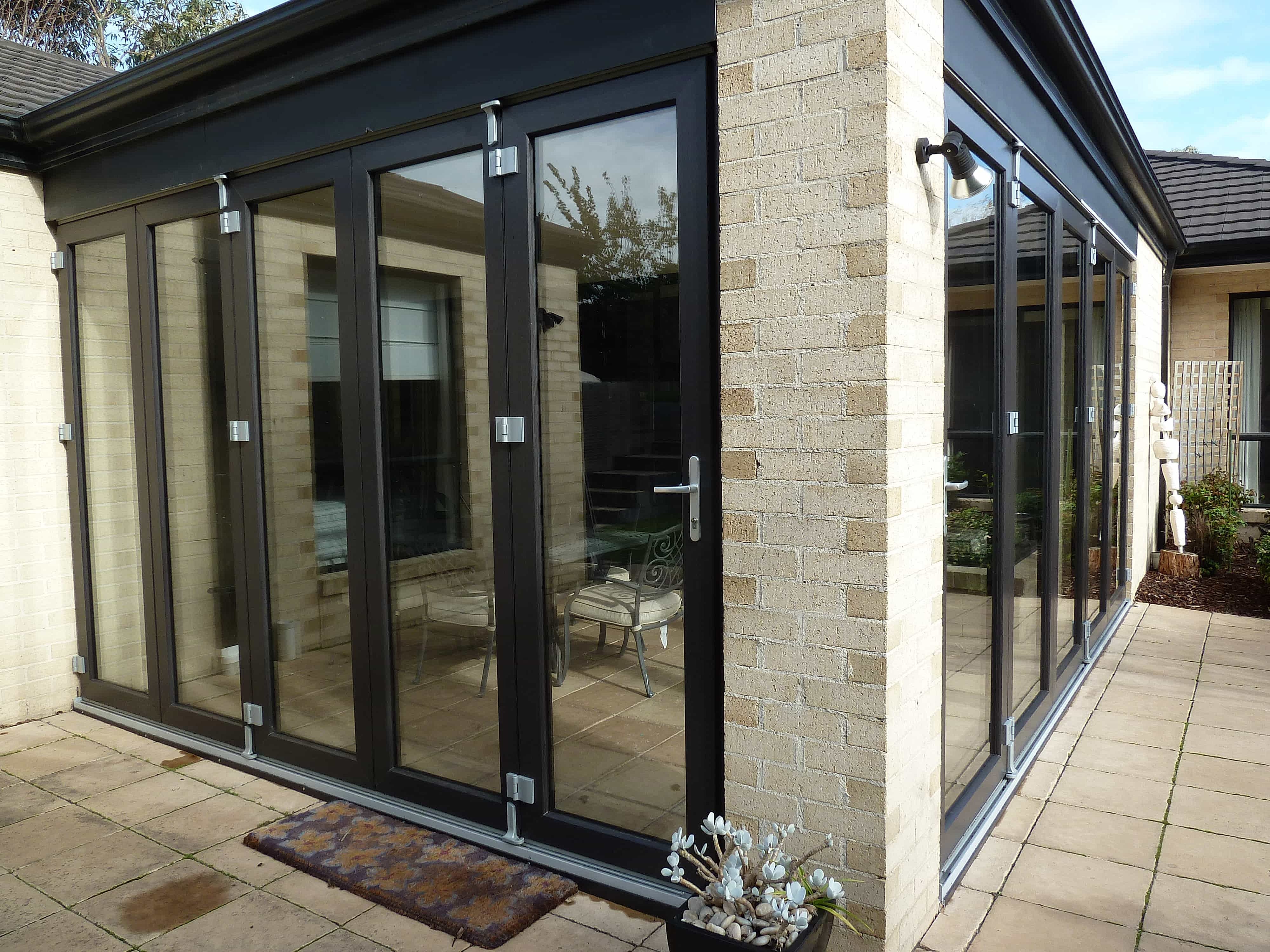 These doors feature our advanced multi-point locking system for added security and can be easily operated by just one handle for ease of use. This handle can also operate the unique tilt and turn option available on some bi fold door configurations. Enertec uPVC bi fold doors are custom built in Melbourne and constructed using high quality Kommerling profiles, Australian made double glazed glass and finished with high quality hardware.